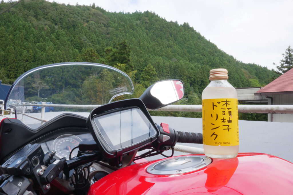 途中、かの有名な木頭村のゆずドリンクを飲みに小休憩。